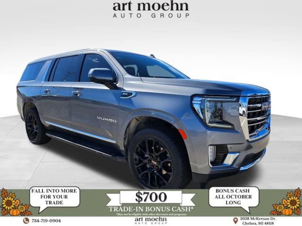 Apple Car Play/ Android Auto, Bluetooth, Remote Start, Backup Camera, Leather, Heated Seats, Multi-zone Climate Control, XM Satellite Radio, Sunroof/Moonroof, Power Liftgate, 3rd Row Seats, Power Seats, Local Trade, 4WD 4 Wheel Drive, Factory Tow Package, Wireless Charging, OnStar, Rear Park Assist, Side Blind Zone Alert, Cooled Seats, Fresh Oil Change, I-94 EXIT 159, 4WD.Odometer is 5782 miles below market average!Certified.Satin Steel Metallic 2022 GMC Yukon XL SLT 4WD 10-Speed Automatic with Overdrive 15/19 City/Highway MPG EcoTec3 5.3L V8GMC Certified Pre-Owned Details:* Warranty Deductible: $0* Transferable Warranty* Powertrain Limited Warranty: 72 Month/100,000 Mile (whichever comes first) from original in-service date* 24 months/24,000 miles (whichever comes first) Certified Pre-Owned Scheduled Maintenance Plan and 3 days/150 miles (whichever comes first) Vehicle Exchange Program. SiriusXM 3-month trial subscription* Roadside Assistance* 172 Point Inspection* Limited Warranty: 12 Month/12,000 Mile (whichever comes first) from certified purchase date* Vehicle History