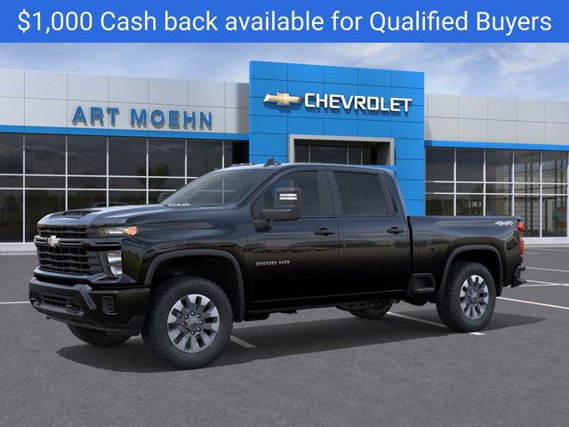 Black 2025 Chevrolet Silverado 2500HD Custom Apple Car Play/ Android Auto, I-94 EXIT 159, 10-Speed Automatic, 4WD, Black Cloth, 10-Way Power Driver Seat Adjuster w/Lumbar, 120-Volt Bed Mounted Power Outlet, 120-Volt Interior Power Outlet, 170 Amp Alternator, 2-Speed Electronic Shift Transfer Case, 3.5 Diagonal Monochromatic Display DIC, Black Mirror Caps, Bluetooth® For Phone, Chevrolet Connected Access Capable, Color-Keyed Carpeting Floor Covering, Compass, Custom Convenience Package, Deep-Tinted Glass, Dual Rear USB Ports (Charge Only), Electric Rear-Window Defogger, Electronic Cruise Control w/Set & Resume Speed, EZ Lift Power Lock & Release Tailgate, Front Rubberized Vinyl Floor Mats, HD Rear Vision Camera, Heated Vertical Trailering Mirrors, LED Cargo Area Lighting, Locking Tailgate, Manual Tailgate Function w/No EZ Lift, Manual Tilt-Wheel Steering Column, OnStar Services Capable, Power Door Locks, Power Front Windows w/Driver Express Up/Down, Power Front Windows w/Passenger Express Down, Power Rear Windows w/Express Down, Preferred Equipment Group 1CX, Push Button Start, Rear 60/40 Folding Bench Seat (Folds Up), Rear Rubberized Vinyl Floor Mats, Remote Keyless Entry, Remote Vehicle Starter System, SiriusXM w/360L Trial Subscription, Standard Tailgate, Suspension Package, Unauthorized Entry Theft-Deterrent System, Wi-Fi Hotspot Capable, Wireless Phone Projection. $5,877 off MSRP! Internet Price includes GM Employee discount, and the following rebates, which only apply to a purchase (lease incentives may be different). Certain individuals may not qualify, see dealer for details:$1000 - Chevrolet Consumer Cash Program. Exp. 12/01/2025