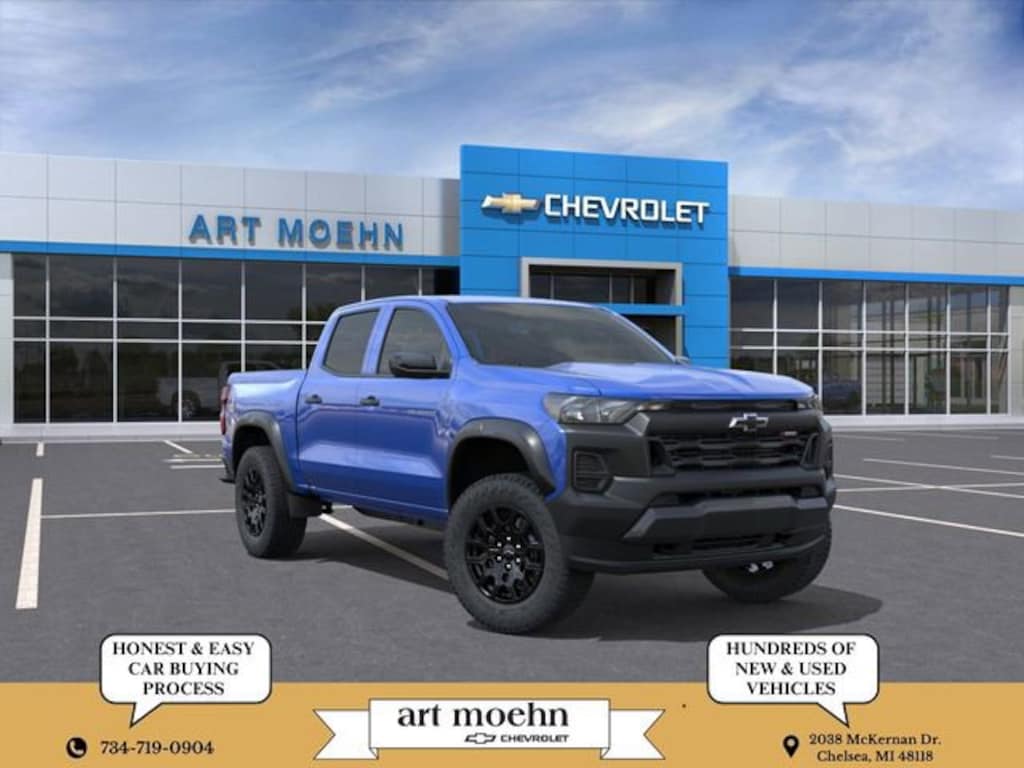 Blue Metallic 2026 Chevrolet Colorado Trail Boss Apple Car Play/ Android Auto, I-94 EXIT 159, 4WD, 4-Spoke Wrapped Steering Wheel, 8-Way Power Driver Seat Adjuster, Automatic Emergency Braking, Chevy Safety Assist, Driver & Front Passenger Heated Seats, Evotex Seat Trim, Following Distance Indicator, Forward Collision Alert, Front Pedestrian & Bicyclist Braking, Heated Steering Wheel, IntelliBeam Automatic High Beam On/Off, Lane Keep Assist w/Lane Departure Warning, Power Driver Lumbar Control Seat Adjuster, Preferred Equipment Group 0TR, Remote Vehicle Starter System, Trail Boss Convenience Package II, Wireless Phone Charging. $3,492 off MSRP!